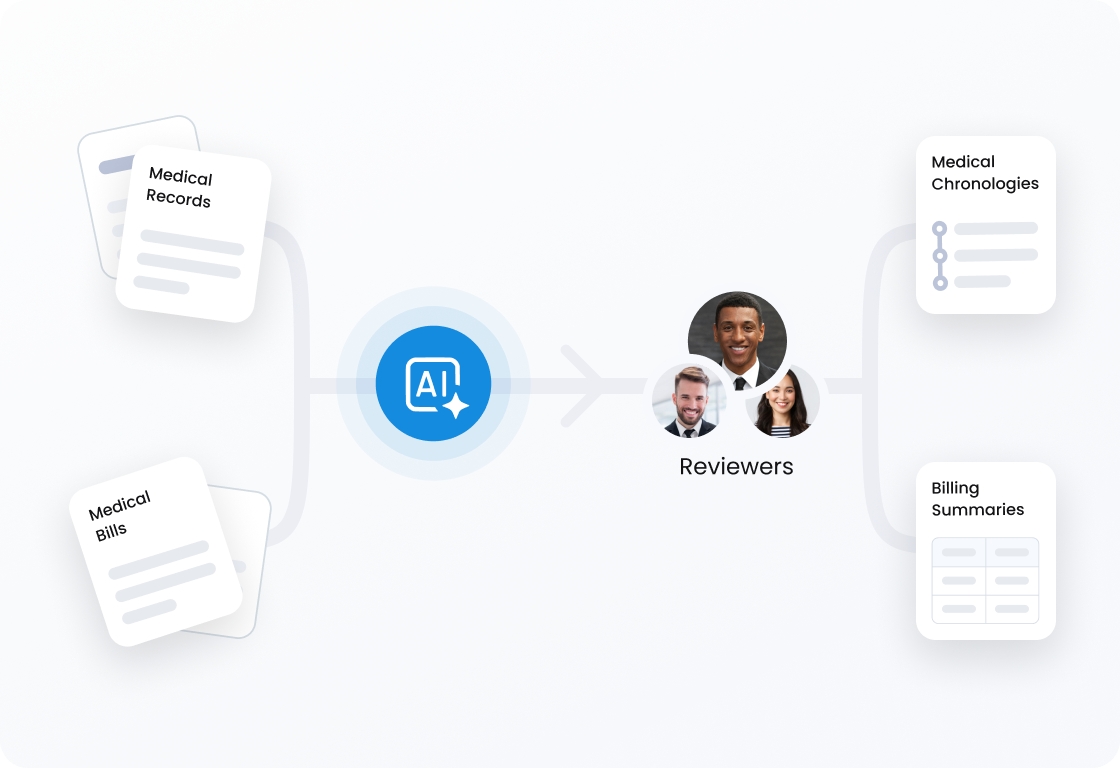 Our system is trained to recognize and highlight diagnoses, ICD codes, procedures, and treatment plans even across disorganized or scanned documents. Then our clinical and legal experts review each summary for accuracy.